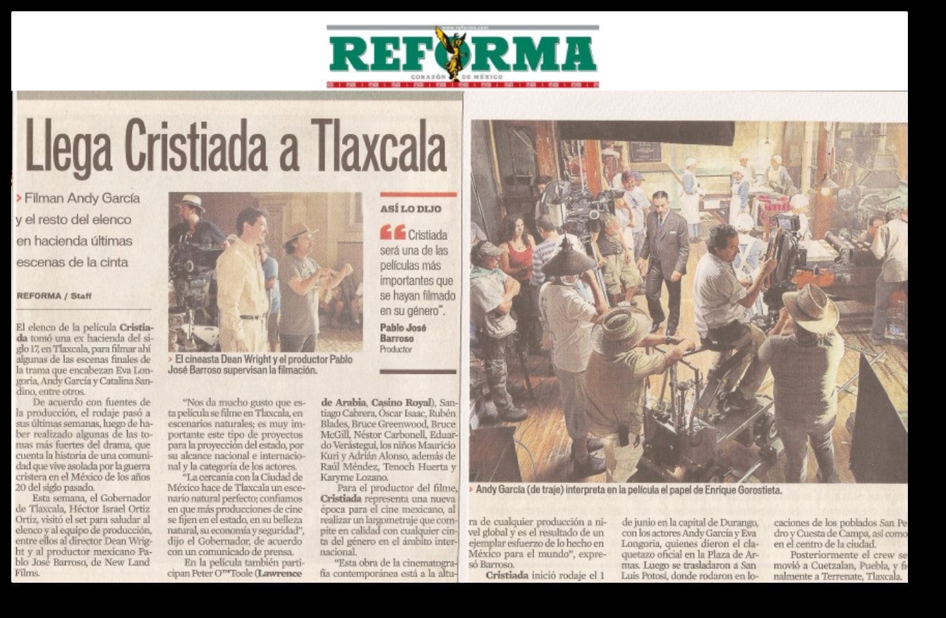 Taller de Ideas RP participó con la producción de la película Cristiada como oficina de prensa durante la etapa de filmación. Para esta tarea, se diseñó una estrategia de comunicación y de contenido acorde y se coordinaron distintas actividades, como entrevistas de prensa para los actores Andy García, Peter O’Toole, Oscar Izaac, Santiago Cabrera y Eduardo Verástegui, y visitas de medios en el set de filmación.