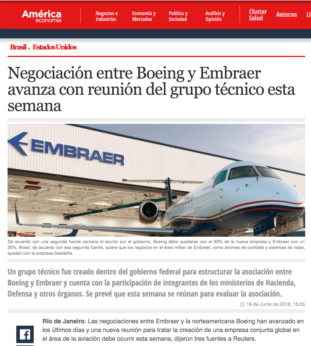 Esta empresa de origen brasileña y una de las líderes en fabricación de aeronaves, ha sido representada en México por Taller de Ideas RP frente a medios de comunicación. Las principales actividades desarrolladas para la compañía consisten en gestión de relación con medios, así como coordinación de su participación en eventos de la industria aeronáutica en México y en el extranjero. Esto ha permitido a su vez, viajes de prensa con reporteros de diversas fuentes para visitar la fábrica armadora de Florida, en los EUA, generando coberturas a profundidad y de alto valor noticioso.